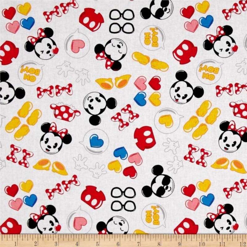 (REMNANT) 100% Cotton Fabric Disney Mickey And Minnie Mouse Emojiland Approx 58cm x 55cm