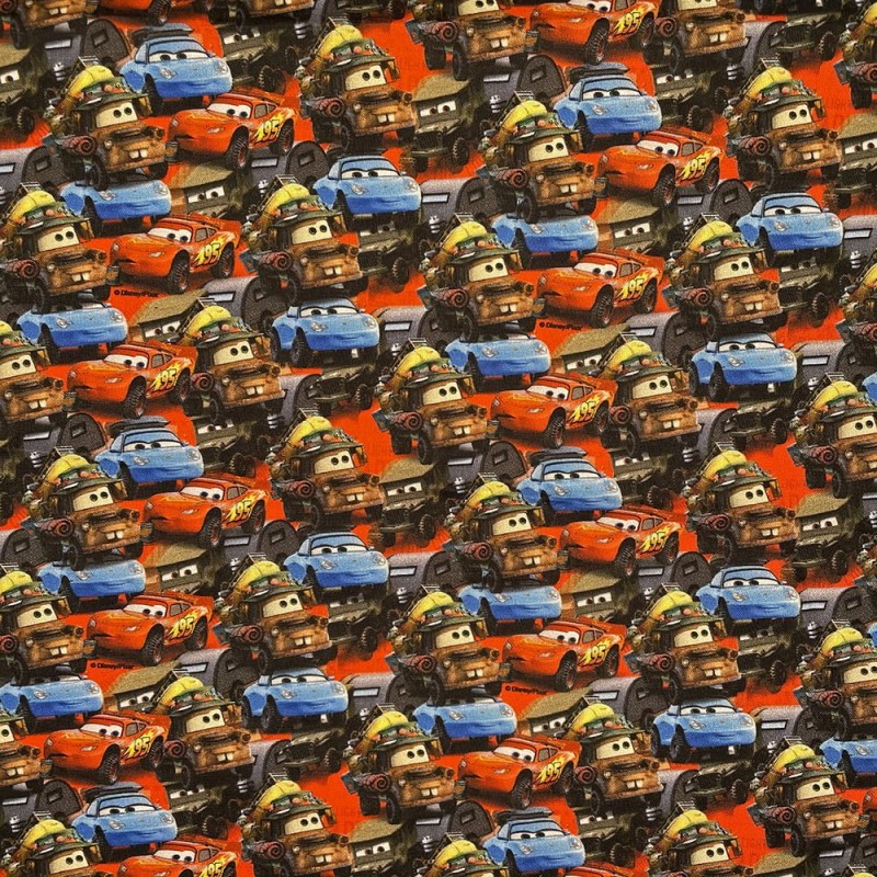 (REMNANT) 100% Cotton Fabric Disney Pixar Cars Lightning McQueen Mater Sally Carrera Approx 32cm x 140cm
