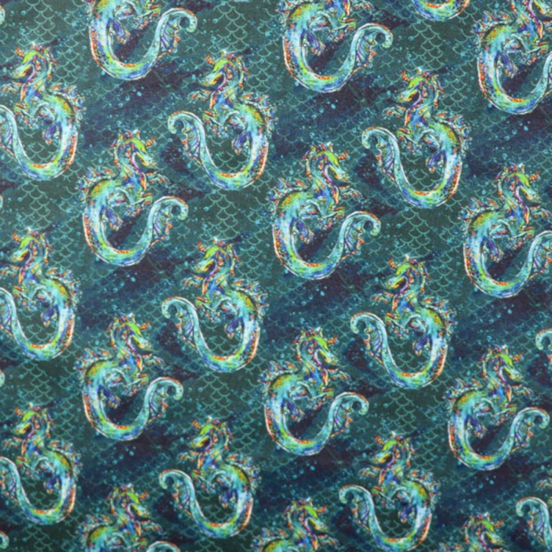 (REMNANT) 100% Cotton Fabric Merboys Sea Monsters Scales Ocean Fantasy Approx 52cm x 68cm