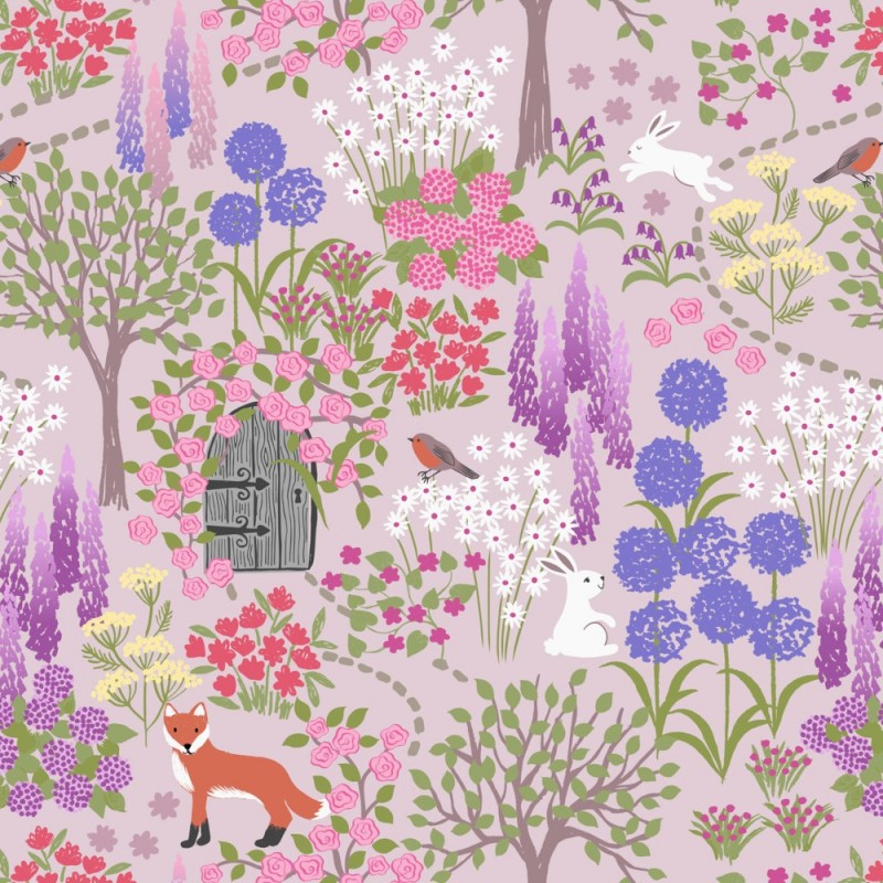 (REMNANT) 100% Cotton Fabric Lewis & Irene Secret Garden Flowers Lilac Approx 30cm x 110cm