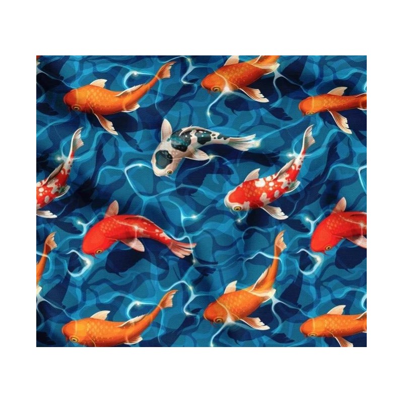 (REMNANT) Polycotton Fabric Koi Fish Japanese Water Approx 28.5cm x 139cm