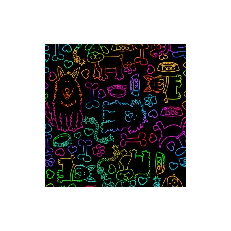 (REMNANT) 100% Cotton Timeless Treasures Rainbow Doodle Dog Fabric Approx 59.5cm x 56.5cm