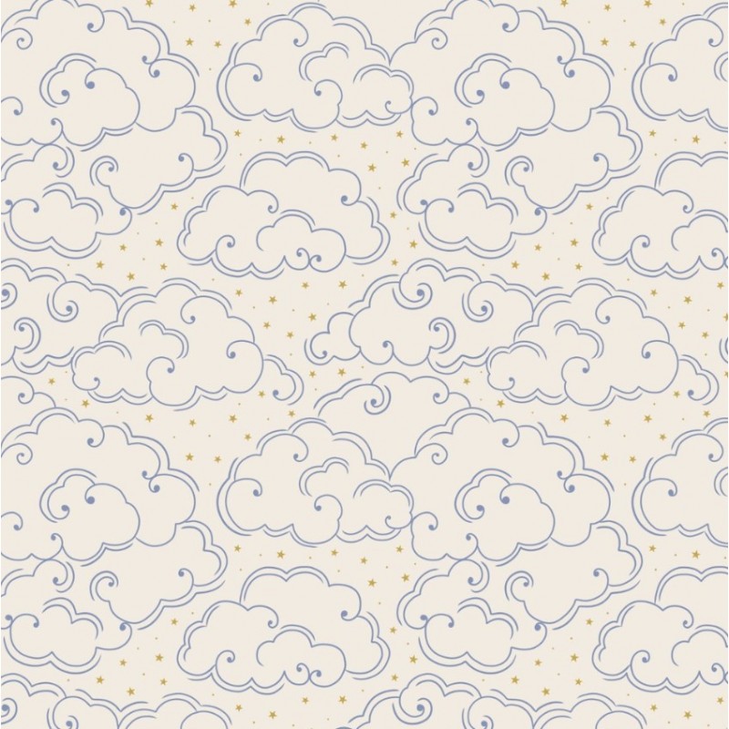 (REMNANT) 100% Cotton Fabric Lewis & Irene Celestial Clouds Cream Metallic Approx 30.5cm x 112cm