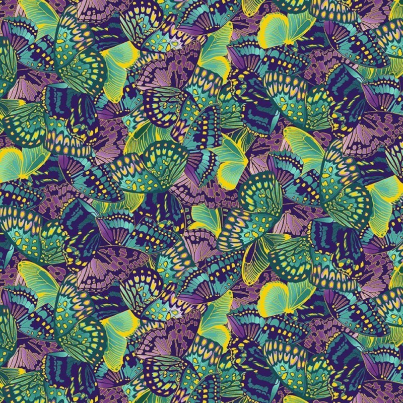 (REMNANT) 100% Cotton Metallic Fabric Timeless Treasures Packed Butterfly Wings