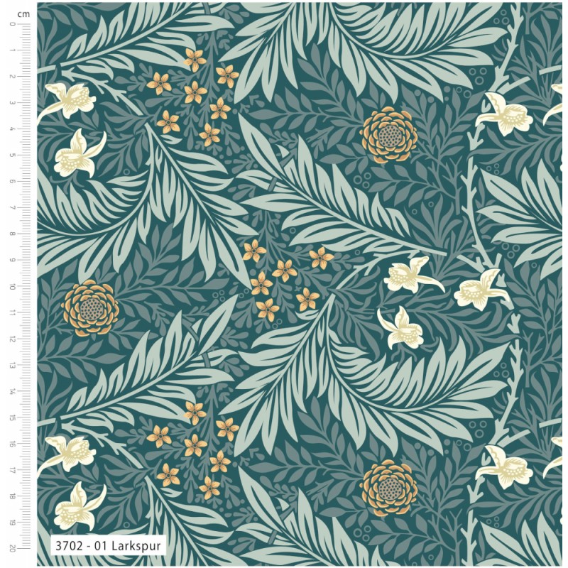 100% Organic Cotton Fabric | V&A | William Morris - Kelmscott Garden - Larkspur | 112cm Wide