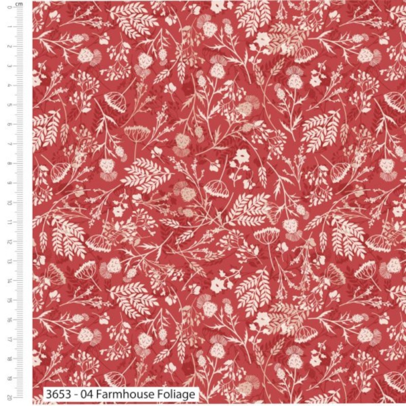 Farmhouse Foliage is part of the Highland Pastures collection from Craft Cotton Co. This elegant design features assorted light beige foliage scattered across a deep red background, creating a classic and versatile look. Its rustic countryside feel makes it a great choice for seasonal sewing, quilting, and home décor projects.