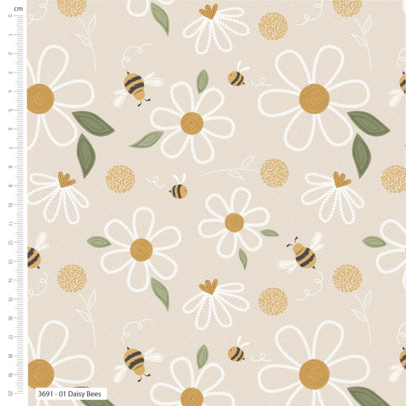 100% Cotton Fabric | The Craft Cotton Co | Daisy Bees | Bramble & Bumble | 150GSM | 112cm Wide