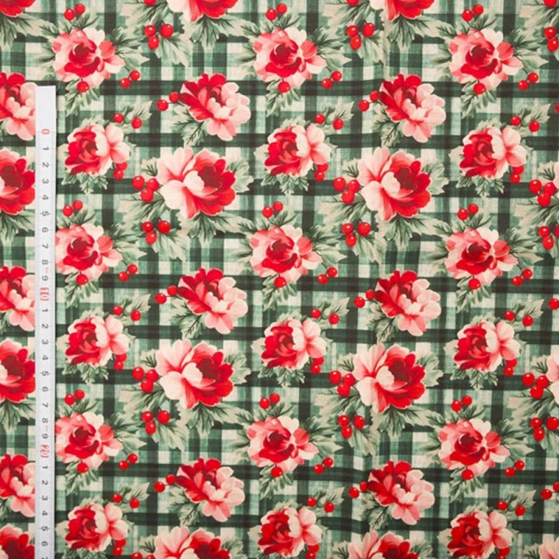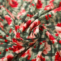 Floral Check is part of the Mindy Digital collection by Empee. This festive digital print features red flowers and clusters of berries layered over a green checkered background. The design blends botanical charm with a touch of seasonal warmth, making it a lovely choice for Christmas-themed or nature-inspired sewing projects. Its balanced composition and fresh colour contrast give it a cheerful yet elegant appeal.