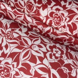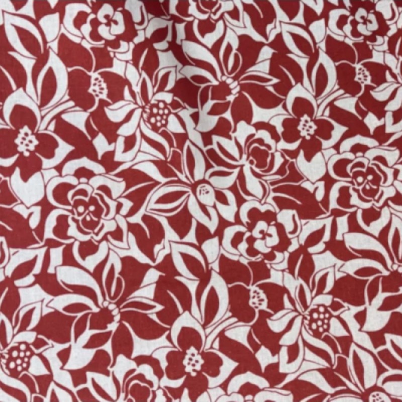 Floral AOP is part of the Mindy Digital collection by Empee. This richly detailed digital floral print features a dense pattern of stylised blossoms and leaves in striking red and white tones. The red background sets off the white-outlined floral motifs, which include both large open blooms and smaller clustered flowers. With its lively, flowing composition and vintage-inspired aesthetic, this fabric brings a timeless elegance to any project.