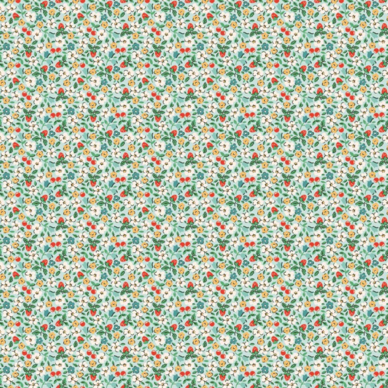 Fruit Salad is a sweet and playful floral cotton fabric from the Farmhouse Fancy collection by Poppie Cotton, designed by Elea Lutz. Featuring a scattered print of tiny blossoms, leaves and strawberries, this design has a light, cheerful feel that brings classic farmhouse charm to any sewing project.
