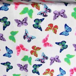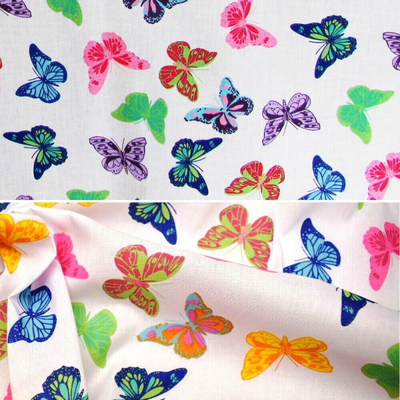 Polycotton Fabric Ditsy Floral Butterflies Fern Leaves Tulips112cm Wide