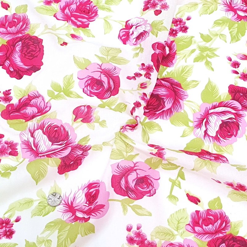 65% Polyester 35% Cotton Polycotton fabric 112cm wideDitsy Roses Floral Flower Rose Garden Hamilton Terrace