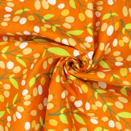 Product Specifications: Product Line: Mindy Polycotton Style Name: Lemons Cadwell Close Material: 65% Polyester / 35% Cotton Fabric Width: Approx. 112cm Weight: Approx. 95gsm Colours Available: Blue, Cream, Orange Common Uses: Dressmaking, children’s clothing, quilting, bunting, soft furnishings, linings, patchwork, bags, and other craft...