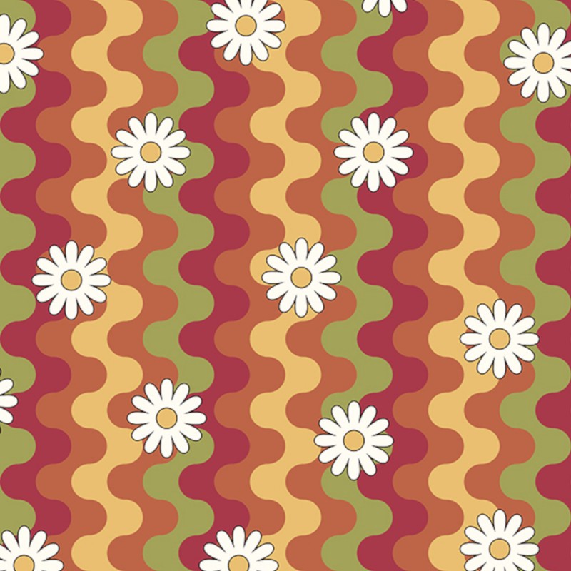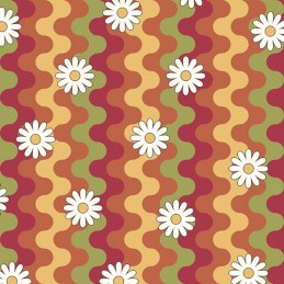 Featuring a 70's inspired wiggly daisy design that is made up of adorable daisies in the foreground and in the background is a fun, stylish, multi-coloured wiggly design. This fabric comes in three, on trend, colourways.