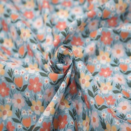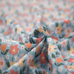 Bring fresh elegance to your creations with the Digital Polycotton Floral Allington Street fabric. This charming print features delicate soft blue flowers scattered across a cream base, offering a timeless, graceful look for garments and décor.