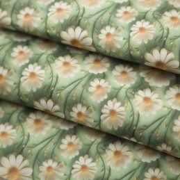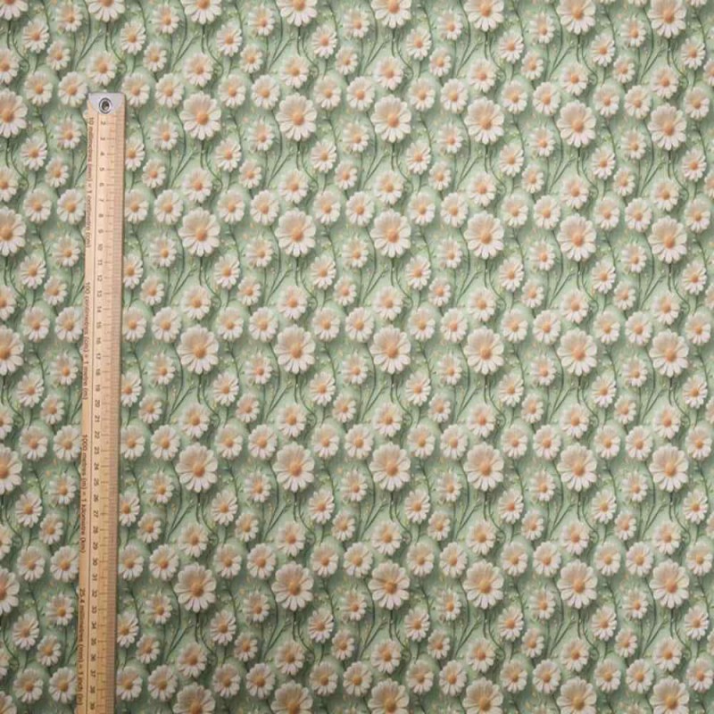 Add the beauty of spring to your sewing with the Digital Polycotton 3D Daisies fabric. This fresh and vibrant design features lifelike daisies digitally printed in soft cream tones against a green background, creating a natural, textured effect while maintaining the smooth finish of polycotton.