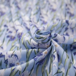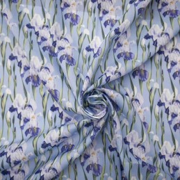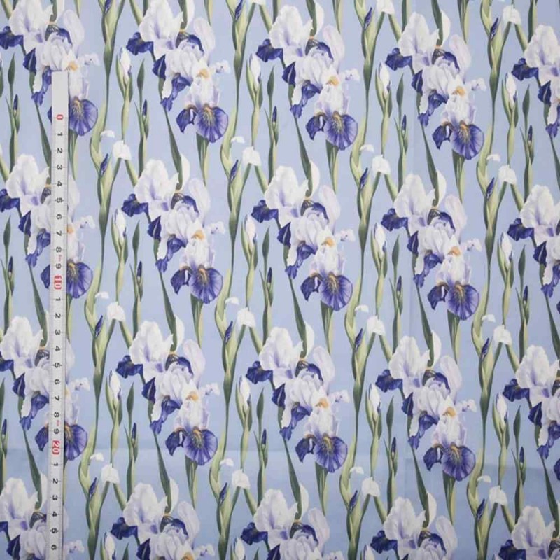 Add refined beauty to your sewing projects with the Digital Polycotton 3D Iris fabric. Featuring elegant purple iris flowers with a lifelike layered effect, this digitally printed design captures the natural grace of the iris in stunning detail. The soft blue-toned background enhances the floral motif, making it a sophisticated choice for both clothing and décor.