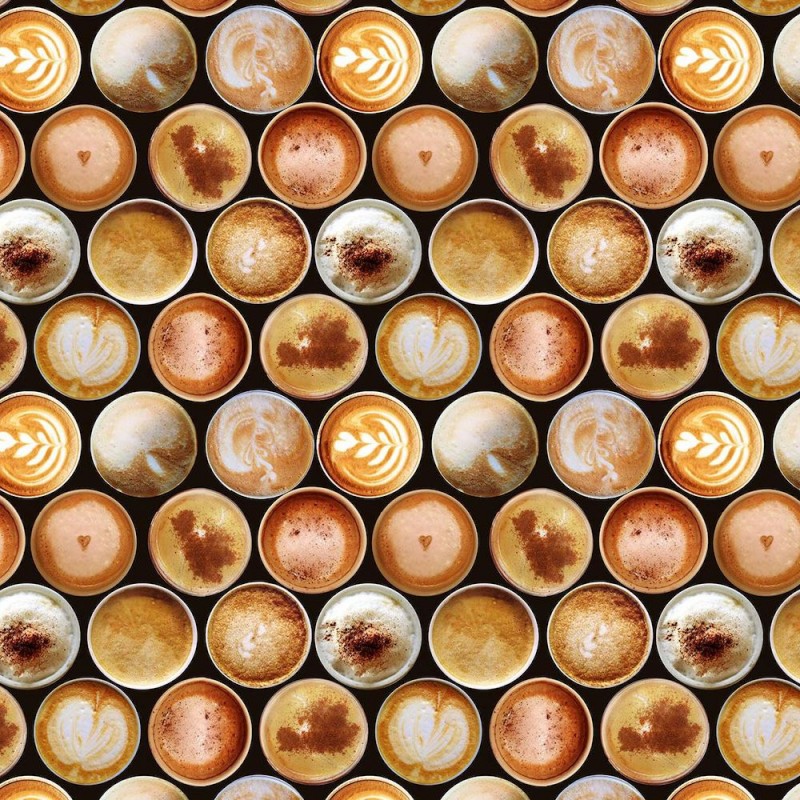 (REMNANT)100% Cotton Digital Fabric Frothy Coffee Latte Espresso APPROX 56CM X 140CM