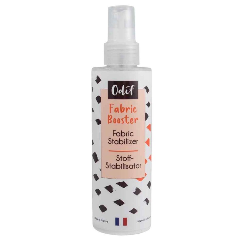 Odif Fabric Booster is a water-based fabric stabilizer designed to temporarily stiffen fabric, making it easier to cut, craft, and embroider. It reduces fraying and improves fabric handling during sewing, embroidery, and crafting projects. After use, it washes out completely with no residue left behind. Ideal for creating 2D and 3D projects without fabric bending or distortion. Made in France.