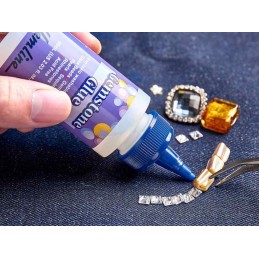 This 60ml bottle of gemstone adhesive is a washable, water-based glue designed to securely bond plastic and glass beads, rhinestones, pearls, and sequins. Its special formula prevents clouding, ensuring gemstones retain their clarity and brilliance. Non-toxic and non-flammable, this adhesive holds gemstones firmly in place, even through multiple washes, making it ideal for embellishing clothing, accessories, and crafts.