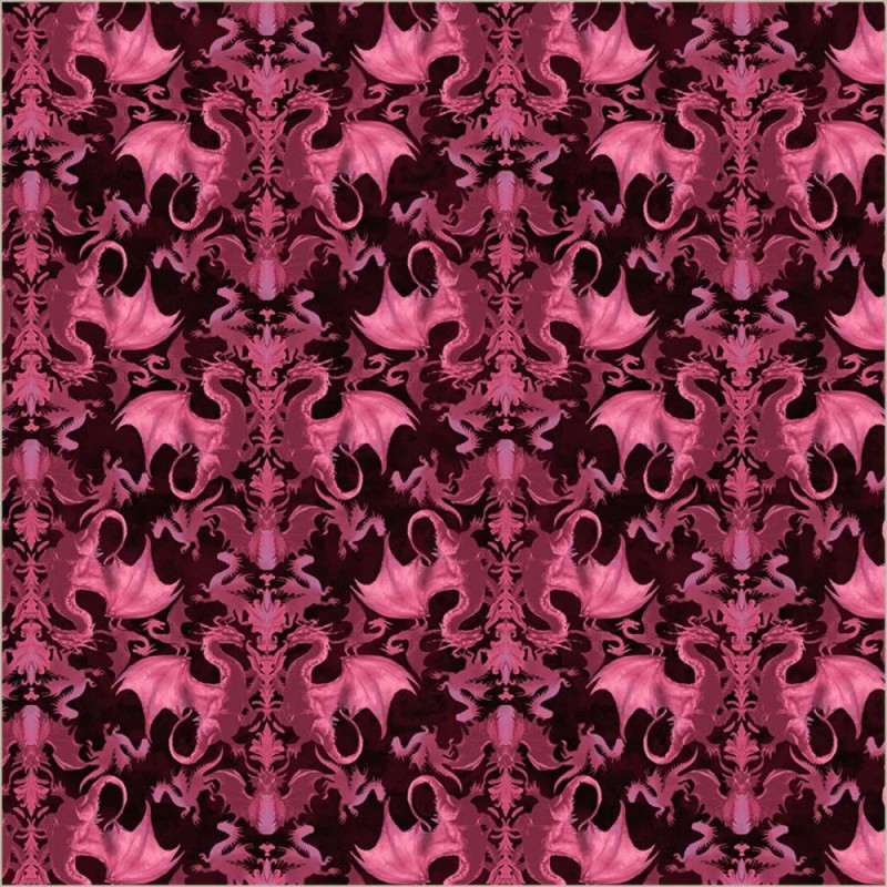 This design is available in two colourways. The Magenta version features vibrant pink dragons on a dark background for a dramatic and eye-catching look, while the Green version shows bright green dragons against a cool blue background for a fresh fantasy palette.