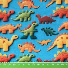 Add a roar of fun to your next project with this adorable Dinosaurs Cotton Jersey Fabric from Little Johnny! Featuring playful, soft-look dinosaur characters in vibrant colours against a light blue background, this stretchy knit fabric is perfect for kidswear, comfy clothes, and cute accessories. Crafted from a breathable cotton blend with elastane for flexibility, it's also STANDARD 100 by OEKO-TEX® certified – gentle on skin and packed with prehistoric personality.