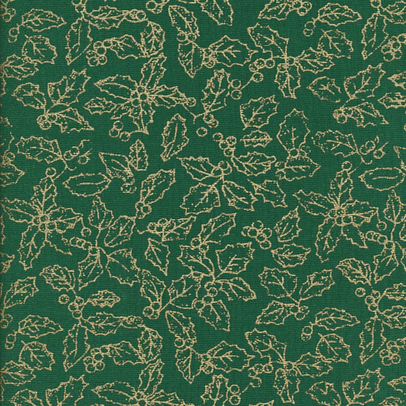 100% Cotton Fabric Packed Holly Berry Metallic140cm Wide