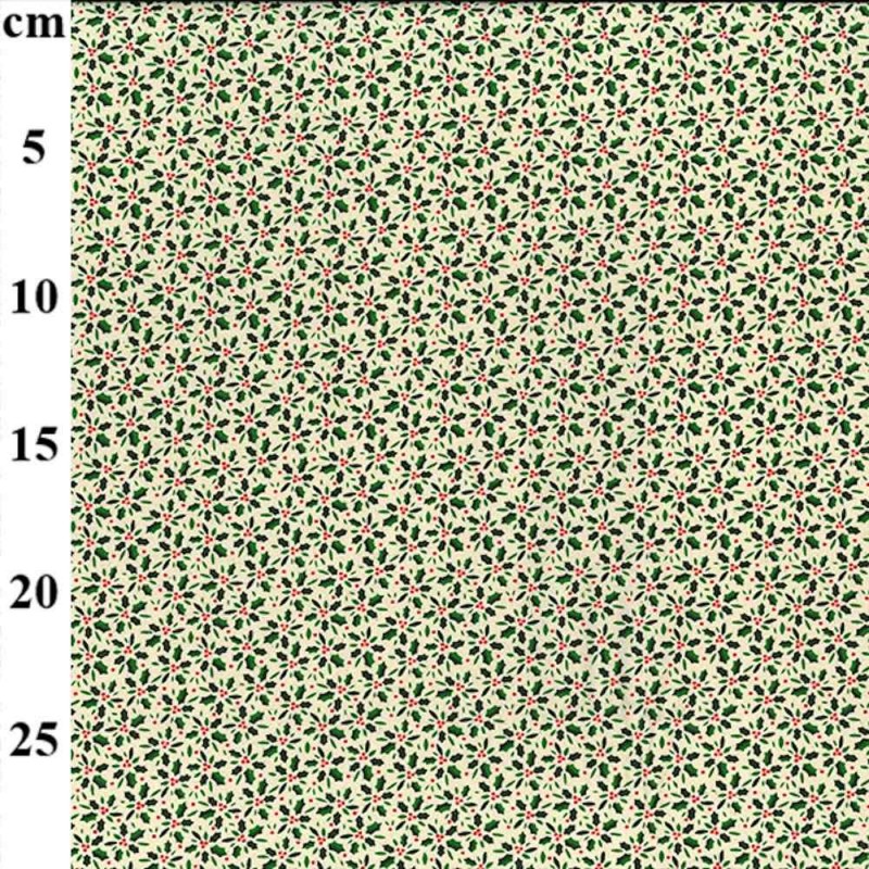 Christmas Xmas Festive Holly Berries Summary Festive cotton fabric with classic holly berry sprigs on a cream background Width: 110 cm (43 inches), weight approx. 140-150 gsm Festive Christmas Holly print Oeko-Tex Standard 100 certified – safe and eco-friendly Ideal for holiday quilting, crafts, gifts, and home décor projects Cold hand wash...