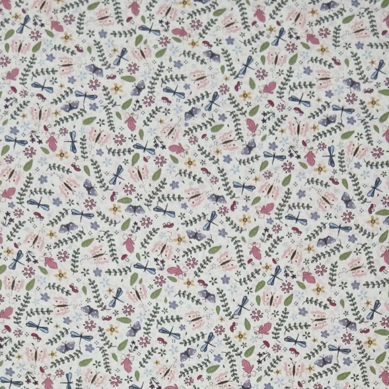 This Garden design from the Fairy Garden range by Lynette Anderson features a soft scattered print of fairies, butterflies and dragonflies, complemented by flowers, leafy vines and whimsical mushrooms. The evenly spaced motifs create a light, versatile pattern that works well across a wide range of sewing projects.