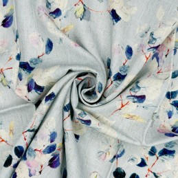 Eucalyptus Linen Viscose Fabric 30% Linen 70% Viscose Blue Floral Print 142cm Wide