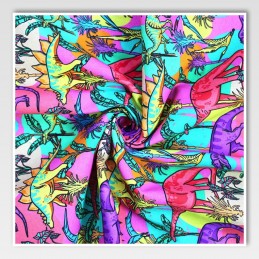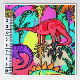 Go prehistoric with this vibrant Little Johnny Dinosaurs print! Featuring a riot of colourful dinosaurs against a bold, tropic-inspired background, this digitally printed fabric on soft, breathable 100% cotton is perfect for fun, standout projects. It's great for both kids and the young at heart – ideal for everything from dressmaking to décor.