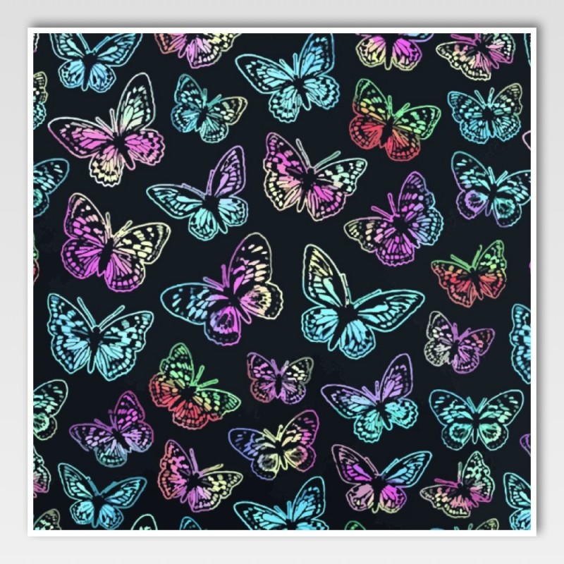 Digitally printed butterflies on a deep black base