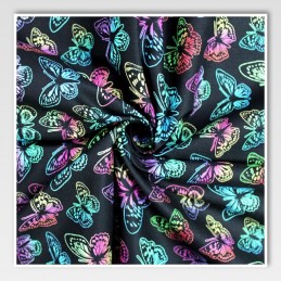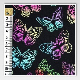 Bold, colourful, and full of charm, this Butterflies fabric by Little Johnny features a vibrant digital print of neon-style butterflies against a striking black background. Made from premium 100% cotton, it offers breathability, softness, and a stylish pop of colour for any sewing or craft project. Perfect for making standout creations that combine comfort and creativity.