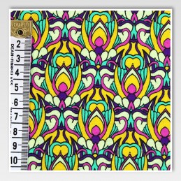 Inject some vintage elegance into your sewing with this Art Nouveau digital cotton from Little Johnny. Featuring a bold, symmetrical design inspired by the decorative arts movement, this fabric brings a stylised floral vibe with a vibrant colour palette of purples, turquoise, gold, and pink. Perfect for lovers of retro flair and striking patterns.