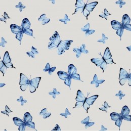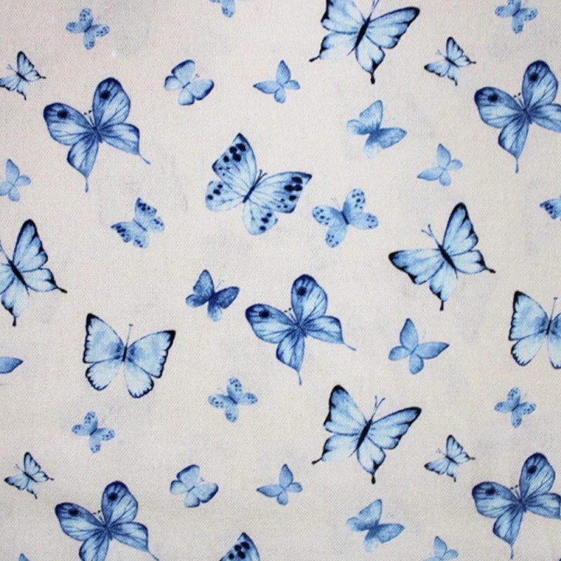 Butterflies from Little Johnny’s Linen Mix collection displays a delicate arrangement of blue butterflies set against a clean white background. With a soft handle and elegant drape, this fabric balances the natural breathability of linen with the smooth finish of viscose.