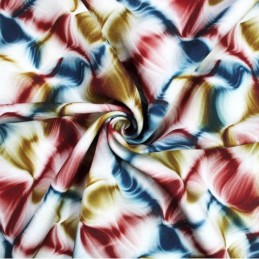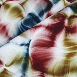 Liquid Design from Little Johnny’s Linen Mix range features vibrant swirls of red, blue, and yellow on a clean white background. The fluid design adds energy and movement, creating a playful yet modern look.