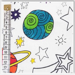 Cotton Fabric – Little Johnny – Colouring In Space Adventure – 149cm Wide – 100% Cotton