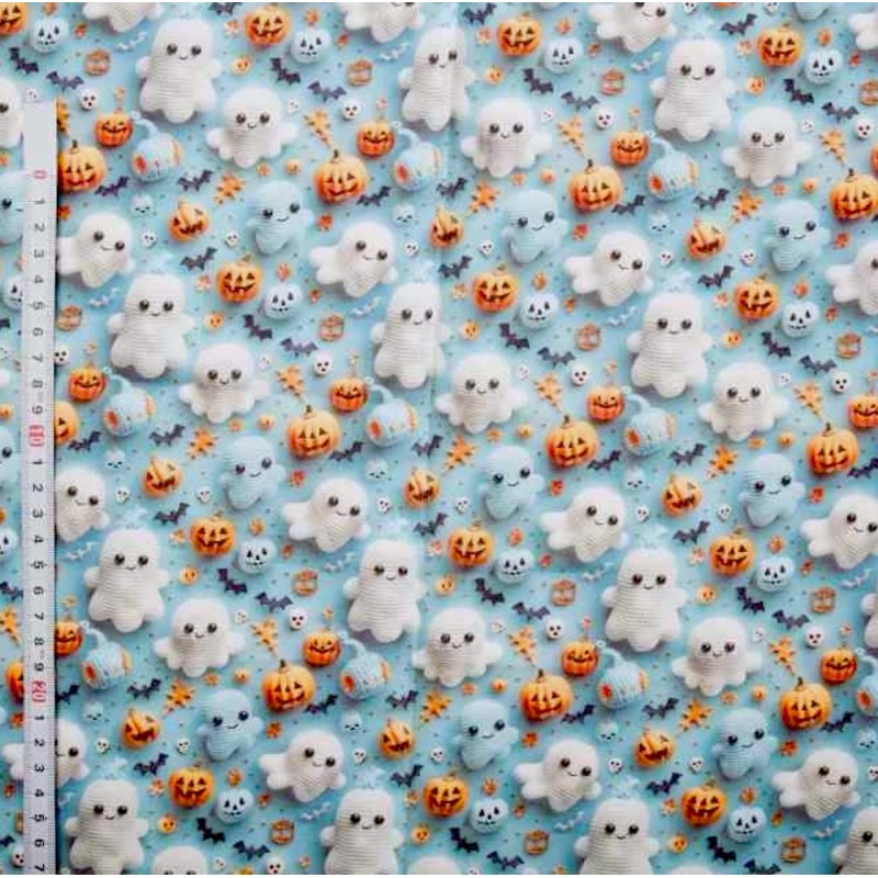 100% Cotton Digital 3D Fabric Little Johnny Crochet Ghosts 150cm Wide