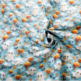 Little Johnny Digital 100% Cotton Fabric – 3D Crochet Ghosts Halloween Print