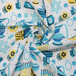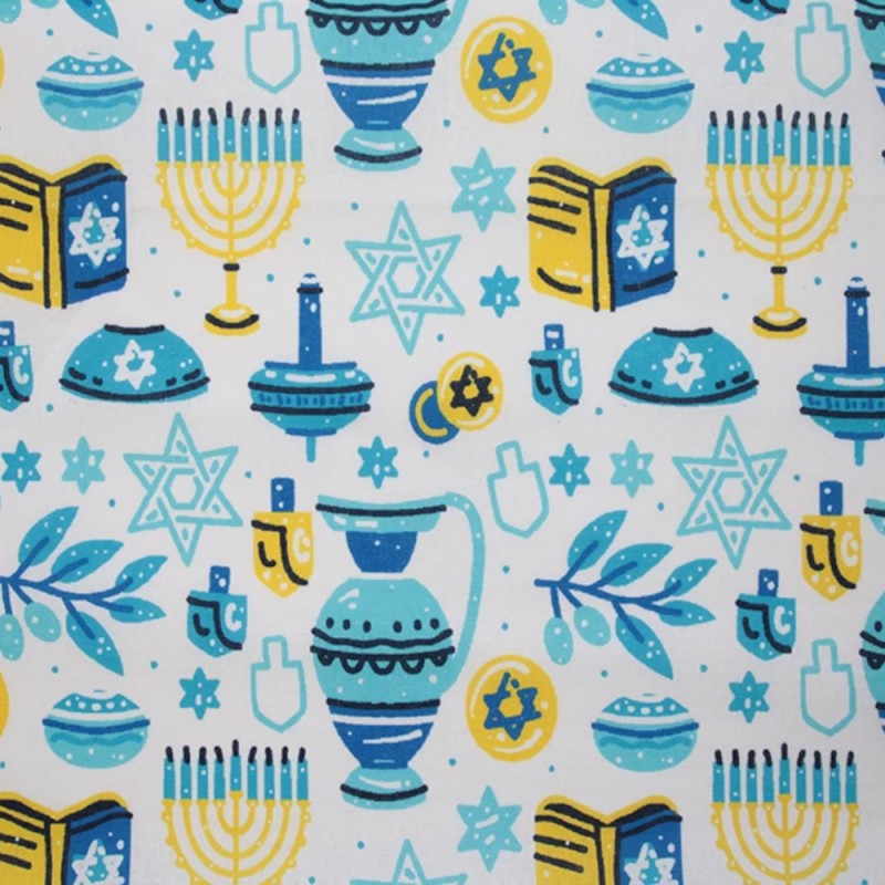 Made from 100% cotton, this fabric is soft, breathable, and lightweight, with a smooth finish that’s easy to work with. At 115GSM and 150cm wide, it is ideal for dressmaking, shirts, blouses, accessories, seasonal décor, and craft projects. The sharp detail and vibrant colour from digital printing makes it perfect for projects celebrating Hanukkah and beyond.
