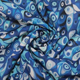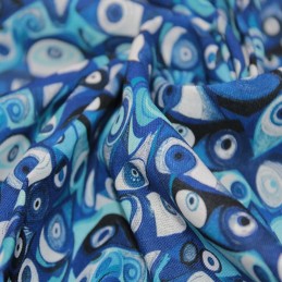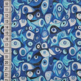 The Little Johnny Digital Cotton Eyes fabric is a bold and eye-catching design from Little Johnny’s digital cotton collection. It features abstract blue eyes scattered across a tonal blue background, creating a playful yet contemporary look. Perfect for statement makes, this fabric brings a quirky edge to both craft and apparel projects.