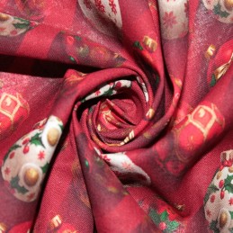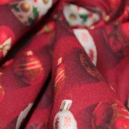 The Little Johnny Digital Cotton 3D Baubles fabric is a festive and playful digital cotton print from Little Johnny. The design features realistic red and white Christmas baubles scattered across a rich red background, creating a lively seasonal pattern perfect for holiday projects.