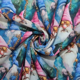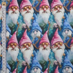 The Little Johnny Digital Cotton Gangster Gnomes fabric is a playful and quirky digital cotton print from Little Johnny, featuring bearded gnomes wearing sunglasses in a fun, contemporary style. This humorous design adds a bold and whimsical touch to any project, perfect for novelty clothing, accessories, and creative craft projects.