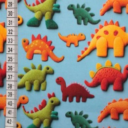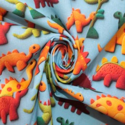 100% Digital Cotton Fabric | Little Johnny | 3D Felt Dinos | 150cm Wide