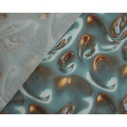The fluid, abstract pattern gives a futuristic and artistic feel, perfect for contemporary fashion pieces or standout interiors. The high-shine effect within the print adds depth and movement, making it an eye-catching choice for creative projects.