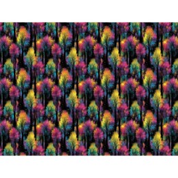Add a bold and artistic touch to your projects with this striking Trees fabric from E Studio. Featuring a forest of silhouetted trees brought to life with vibrant splashes of colour, this design has a modern, abstract feel that stands out beautifully.