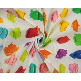 Get creative with the vibrant Paint Palette fabric from Little Johnny. This eye-catching design features bold, textured-style paint swatches in a wide range of colours, arranged across a clean light background for a fresh and modern look.