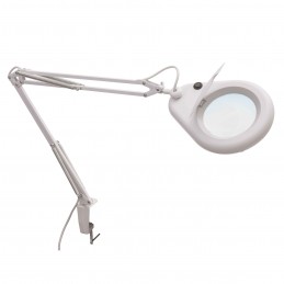 The 2x magnification, 10cm optical-quality lens is ideal for close-up work, and the ball and socket head joint allows for easy and exact positioning. Designed to clamp securely to your work table, this lamp is mains operated and features a protective dust cover over the magnifier when not in use.