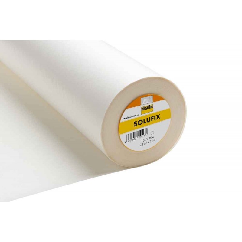 Vlieseline Solufix is a premium self-adhesive and water-soluble embroidery backing—perfect for precision placement of machine embroidery without the need for temporary spray adhesives. With a 45cm width, it’s ideal for a range of projects, from intricate machine embroideries to mini quilts and other creative sewing techniques. Solufix eliminates the mess of tearing or ironing excess backing—just wash it away in cold water. It adheres securely to most fabrics and washes out completely for a clean, professional finish.