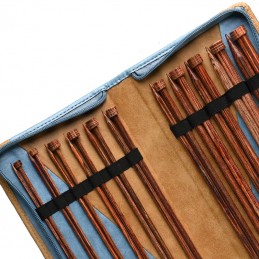 This comprehensive set includes 12 pairs of 25cm straight needles in a wide range of sizes, along with 20 linea stitch markers to help keep track of your work. All items are neatly stored in a premium denim and beige case, complete with a handy pattern holder, making it perfect for storage and travel.